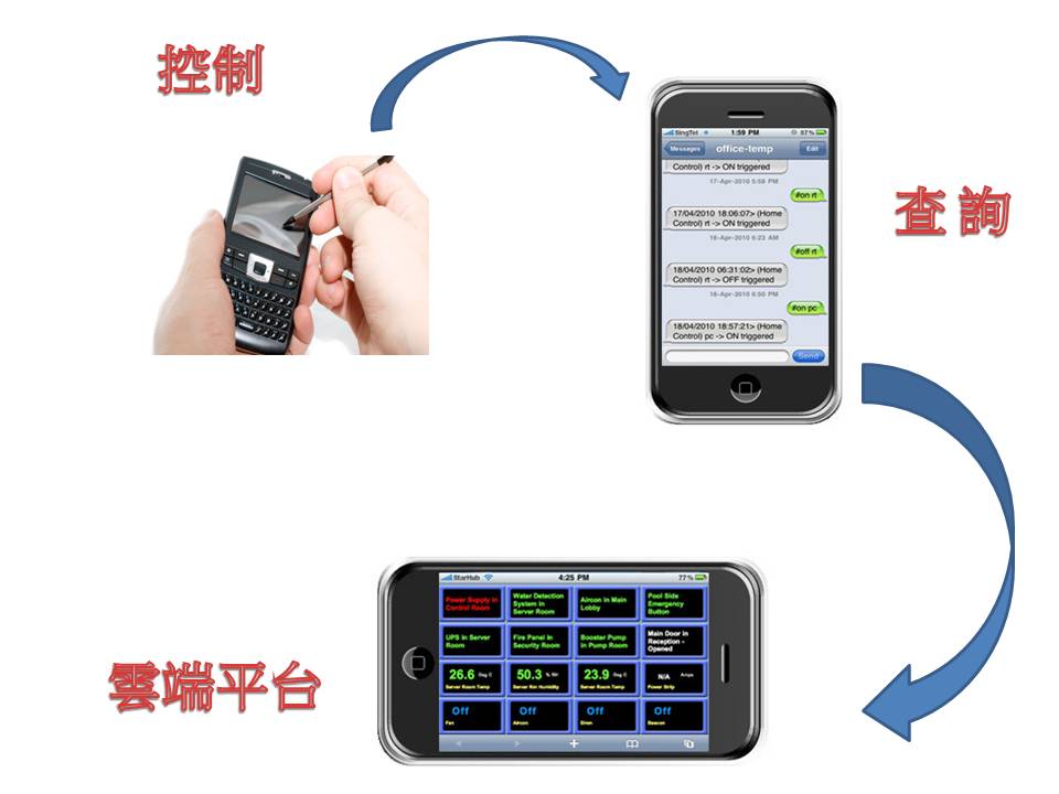 電腦機房>>即時監控>>輕鬆完成架構(SMS+Ethernet+AT控制)